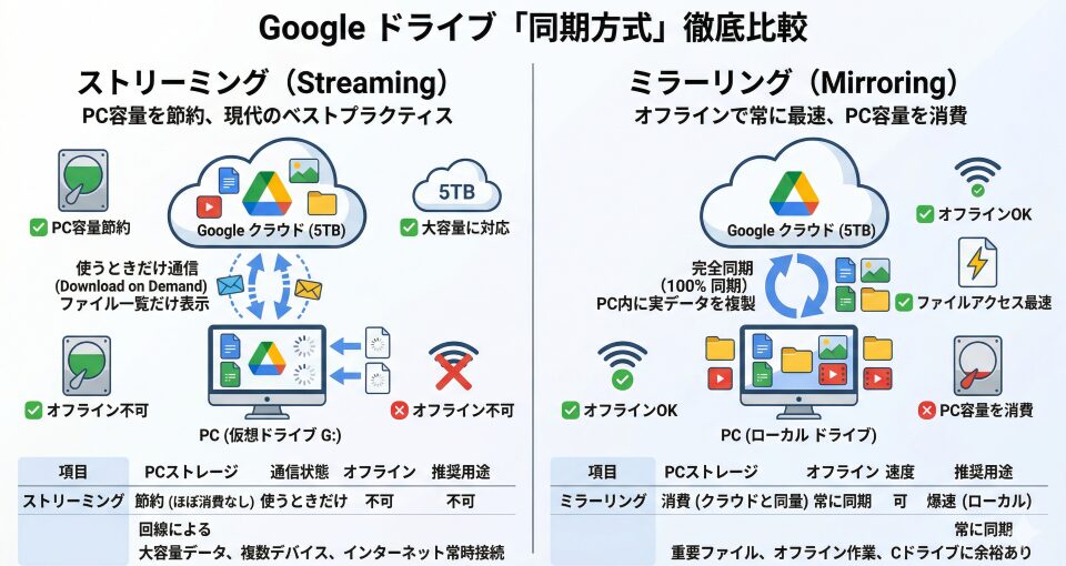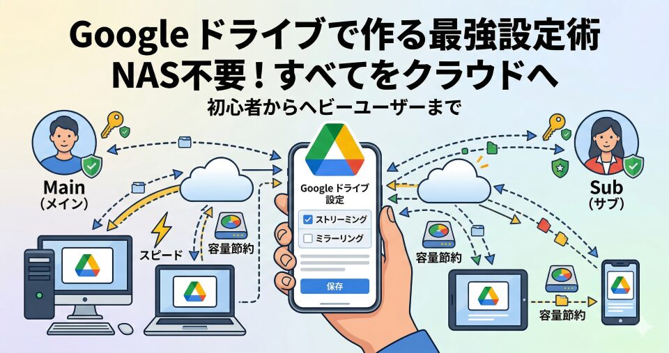 そこで今回は、Google ドライブの基本から、「ストリーミング」と「ミラーリング」の違い、そして初心者からヘビーユーザーまで使える独自の「最強設定術と使い分け」について徹底解説します。