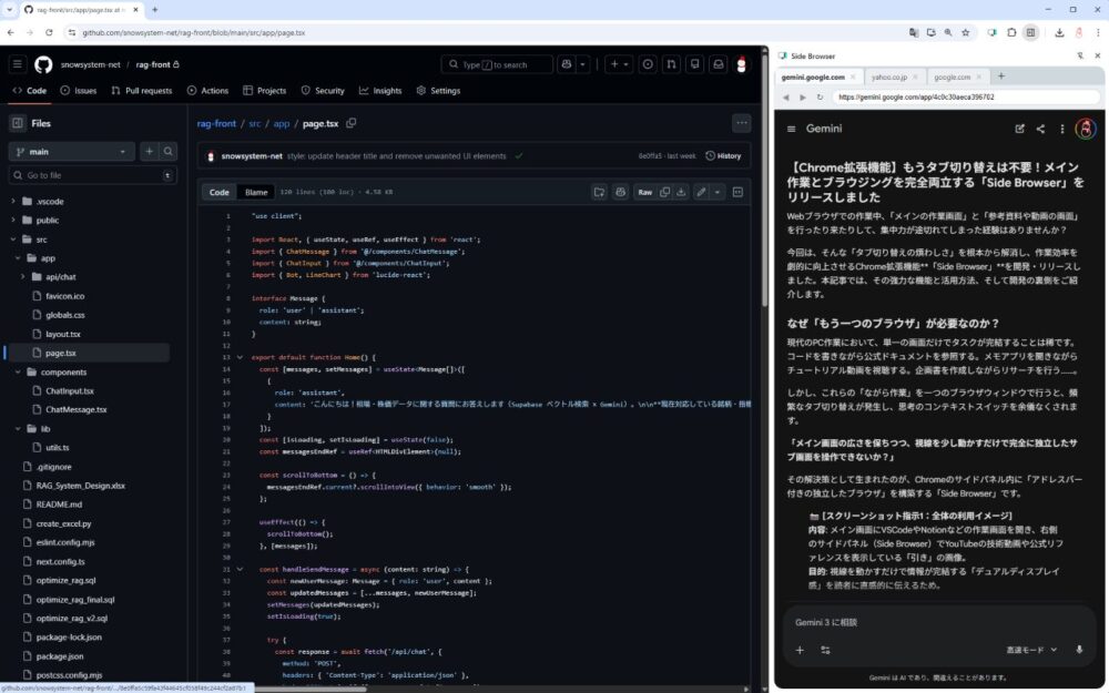 今回は、そんな「タブ切り替えの煩わしさ」を根本から解消し、作業効率を劇的に向上させるChrome拡張機能「Side Browser」を開発・リリースしました。本記事では、その強力な機能と活用方法、そして開発の裏側をご紹介します。