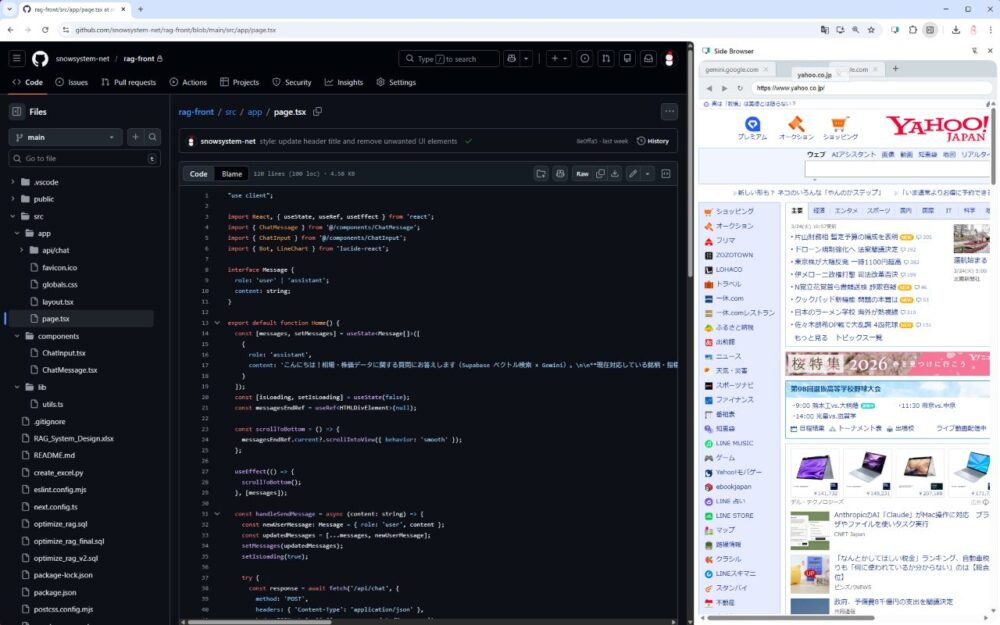 クラウドIDEや開発コンソールをメイン画面で大きく開きながら、Side Browserで公式ドキュメントやリファレンスサイト、AIチャットを常時スタンバイ。画面を行き来することなく、コードの記述と調査を並行して行えるため、開発効率が最大化されます。
