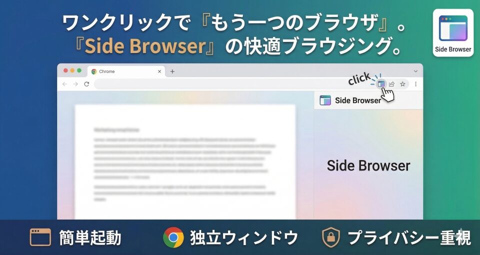 「Side Browser」は、ブラウザでの作業環境を一段階引き上げる強力なアシスタントツールです。タブの迷子や画面切り替えのストレスから解放され、目の前のタスクにより深く集中できる体験を、ぜひご自身の環境でお試しください。